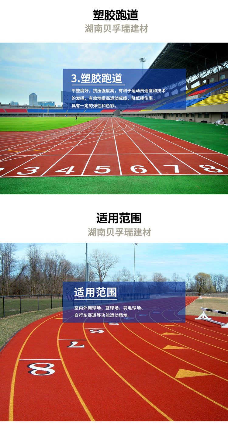 3、超強(qiáng)耐磨:面層選用高強(qiáng)度硅樹脂顆粒材料,獨(dú)特的雙層結(jié)構(gòu)。比普通產(chǎn)品更加耐磨,有的使用壽命達(dá)到8年以上。